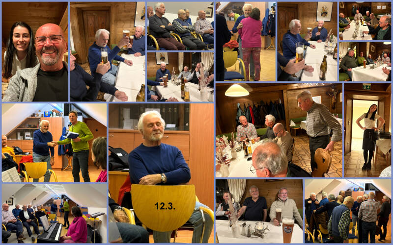 23 von 24 Sängern waren am Donnerstag, 20.3. bei der Singprobe und nach dem Hoch für den Geburtstagsjubilar Peter G. ging's wie immer zum kameradschaftlichen Teil des Abends zum Bonder, wo wir noch viele Lieder für Peter sangen und er uns zu einem ordentlichen Umtrunk einlud - vielen DANK!